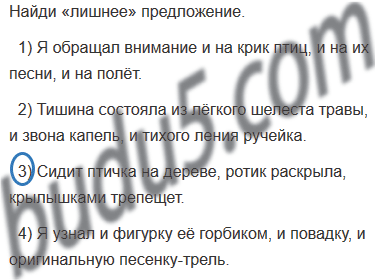 Лишним будет предложение, где однородные члены связаны без союзов, т.к. в остальных предложениях использованы повторяющиеся союзы И.