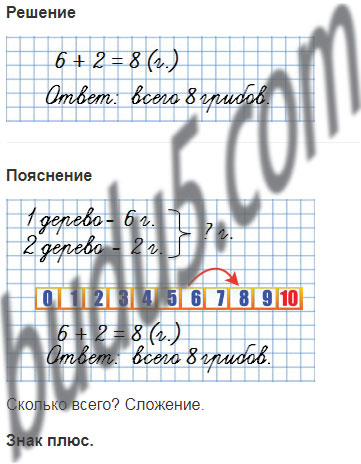Оля нашла под одним деревом , а под другим - 2 гриба. Сколько всего грибов нашла Оля под этими деревьями?