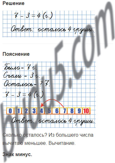 В вазе было . За обедом съели 3 груши. Сколько груш осталось?