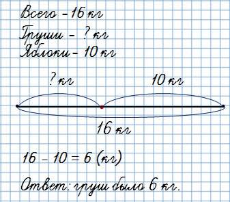 В школьный буфет привезли 16 кг фруктов: несколько килограммов груш и 10 кг яблок. Сколько килограммов груш привезли в буфет?