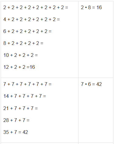 | 9 + 9 + 9 = 9 • 3 | 48 + 48 = 48 • 2 |