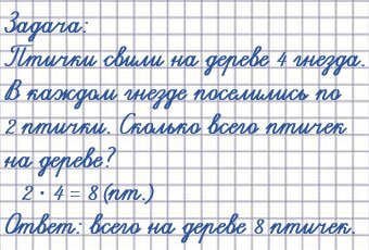8 птичек поселились в гнездах на дереве. В каждом гнездышке было по 2 птички. Сколько всего гнёзд на дереве?