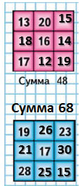 Красный квадрат магический - каждая сумма равна 48.