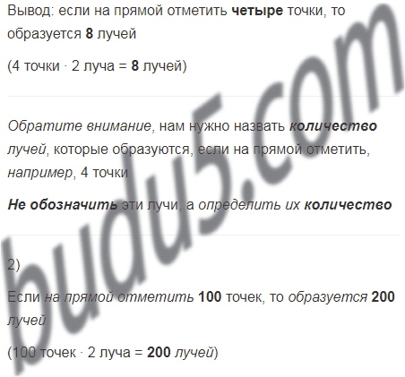 Сколько лучей образуется, если на прямой отметить: 1) четыре точ­ки; 2) 100 точек?