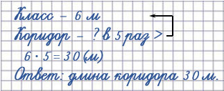 3. Длина класса  м, а длина коридора в 5 раз больше длины класса. Дополни условие и узнай длину коридора.