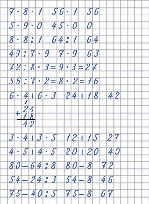 56 : 7 • 2 = 16 75 - 40 : 5 = 67