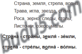Образец. Страна - стра́ны.
