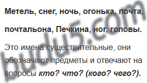 Выпишите из первого предложения выделенные слова. Что они обозначают? Можно ли в эту группу включить другие выделенные слова? Запишите их через запятую. Что общего у всех записанных вами слов? На какие вопросы они отвечают?