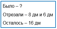 1) 8 + 6 = 14 (дм) - всего отрезали.