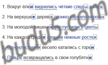 Допишите предложения. Подчеркните главные члены в каждом из них. Выделите падежные окончания имён существительных.