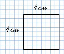 Площадь квадрата можно определить, умножив сторону саму на себя. Подберём число, при умножении которого само на себя, получится 16. Это число 4. Начертим квадрат со стороной 4 см.