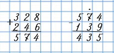 | 328 + 246 | 574 - 139 |