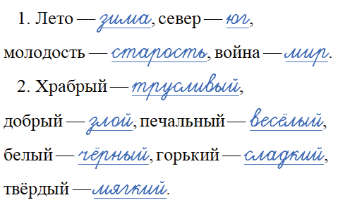 1. Лето — зима, север — юг, молодость —