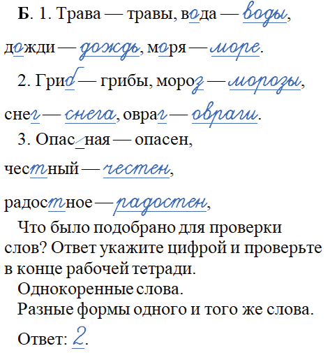Б. 1. Трава — травы, в_да — _______, д_жди — _______, м_ря — _______.