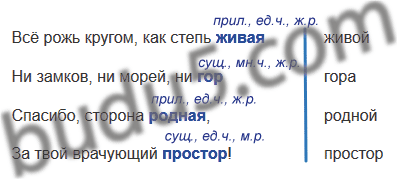 Допишите пропущенные в стихотворных строках Н. Некрасова слова. Какую часть слова надо изменить, чтобы связать слова по смыслу? определите часть речи, число и, если можно, род каждого вставленного слова.