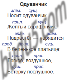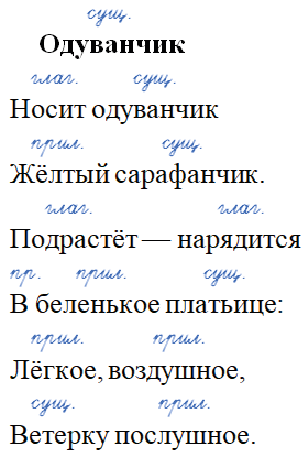Прочитайте стихотворные строки Е. Серовой. Укажите над каждым словом, к какой части речи оно относится.