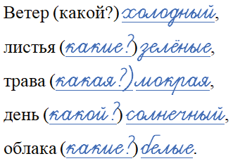 Дополните словосочетания именами прилагательными. В скобках запишите вопрос к каждому прилагательному.