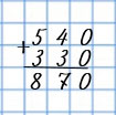 540 + 330 = 870 90 : 15 • 13 = 78