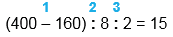 1) 400 - 160 = 240 2) 240 : 8 = 30 3) 30 : 2 = 15 |