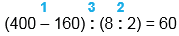 1) 400 - 160 = 240 2) 8 : 2 = 4 3) 240 : 4 = 60 |
