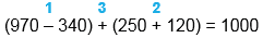 1) 970 - 340 = 630 2) 250 + 120 = 370 3) 630 + 370 = 1000 |