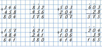 Пишу (единицы под единицами, десятки под десятками, сотни под сотнями): 346 + 458.