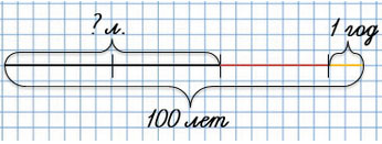 1) 100 - 1 = 99 (л.) - за вычетом одного года.