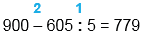900 - 605 : 5 = 779