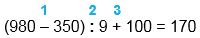 4. Укажи значение числового выражения (980 - 350) : 9 + 100.