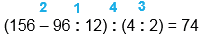 (156 - 96 : 12) : (4 : 2) = 74