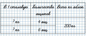 2. В одну столовую привезли 4 ящика яблок, а в другую - 6 таких же ящиков. Всего привезли 200 кг яблок. Сколько килограммов яблок привезли в каждую столовую?