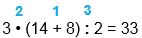 1) 14 + 8 = 22 2) 3 • 22 = 66 3) 66 : 2 = 33 | |||||||||||||||||||||||||||||||||||||||||||||||||||||||||||