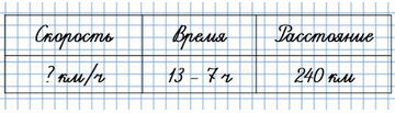 31. Грузовая машина вышла из посёлка в 7 ч и прибыла в город в 13 ч того же дня. За это время она прошла 240 км. С какой скоростью шла машина?