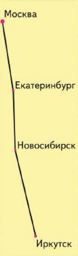Расстояние между Новосибирском и Иркутском - это расстояние между Москвой и Иркутском без расстояния между Москвой и Екатеринбургом и Екатеринбургом и Новосибирском.
