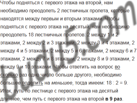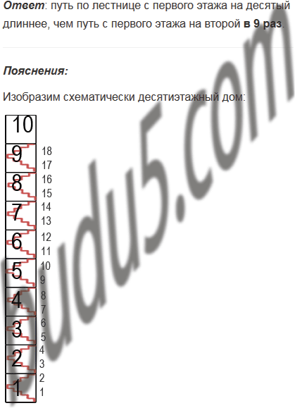 Во сколько раз путь по лестнице с первого этажа на десятый длиннее, чем путь с первого этажа на второй.
