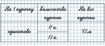 49. Во вторник в ателье сшили 11 одинаковых курток, а в среду - 13 таких же курток. Всего на них израсходовали 72 м ткани. Сколько метров ткани израсходовали в каждый из этих дней?