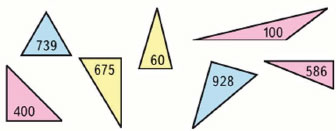 Прямоугольные треугольники с числами 400, 675, 928 и 586.