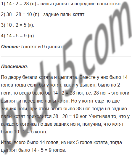 По двору бегали котята и цыплята. Вместе у них было 14 голов и 38 ног. Сколько котят и сколько цыплят бегало по двору?