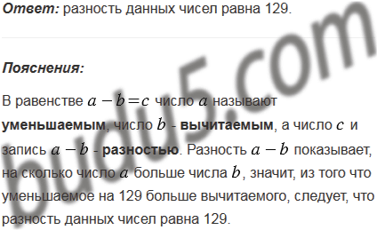Уменьшаемое на 129 больше вычитаемого. Чему равна разность?