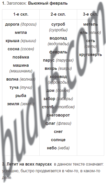 Распредели существительные в три столбика по склонениям: