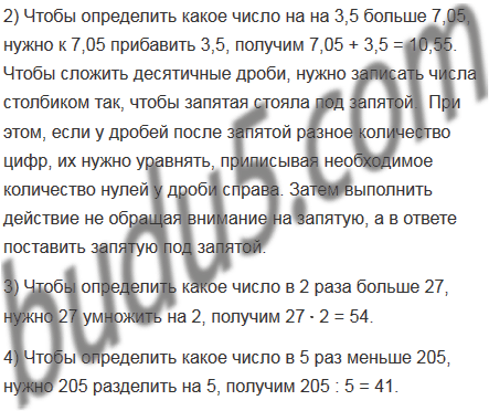 2) на 3,5 больше 7,05; 4) в 5 раз меньше 205?
