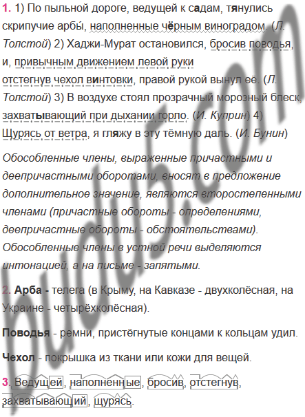 1. Спишите, вставляя пропущенные буквы. Охарактеризуйте смысловые, грамматические, интонационные и пунктуационные признаки обособленных членов, выраженных причастными и деепричастными оборотами.