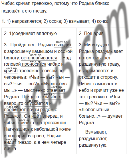 3. Перепишите 2-й абзац, раскрывая скобки и вставляя пропущенные буквы. Подчеркните глаголы как члены предложения, сверху укажите время глагола. 3. Перепишите 3-й абзац. Найдите и выпишите из текста слова с приставкой на з/с.