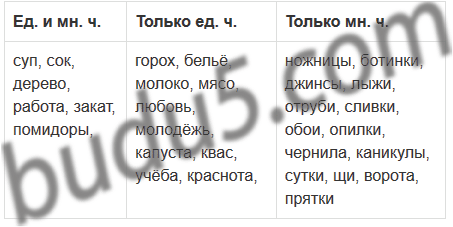 | Ед. и мн. ч. | Только ед. ч. | Только мн. ч. |