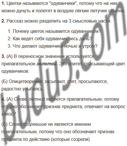(1) Все знают эти простые цветы, похожие на маленькое со(?)нце с золотыми лепестками-лучами. Всё лето цветут одуван(?)чики, а созревшие их семена собраны в лёгкий пушистый шарик. Дунешь на шарик — поплывут, полетят в воздух.. лё..кие летучие семена. Потому и называется цветок «одуван(?)чик».