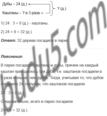 В парке посадили каштаны и дубы, причем на каждый каштан приходилось три дуба. Сколько всего деревьев посадили в парке, если дубов посадили 24?
