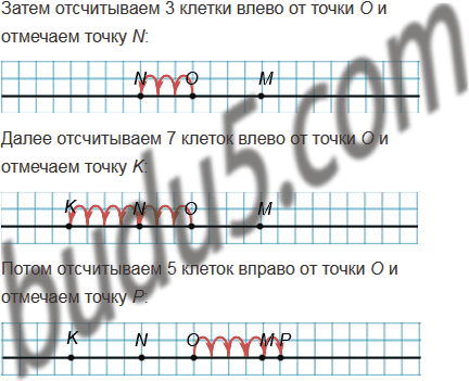 Начертите горизонтальную прямую, отметьте на ней точку О и точки М, N, K, P, которые расположены так:
