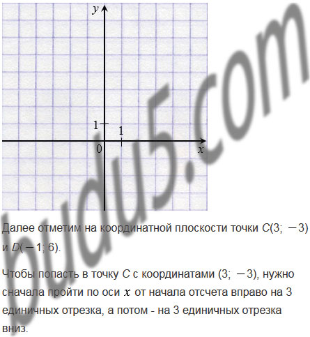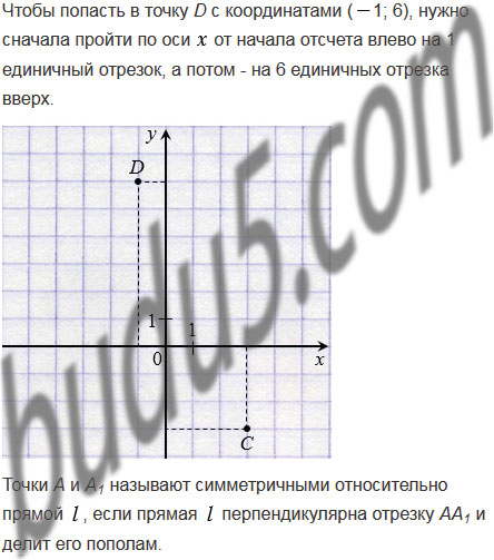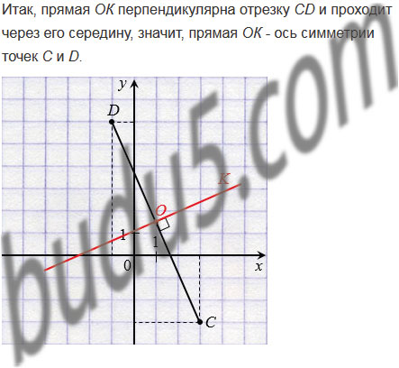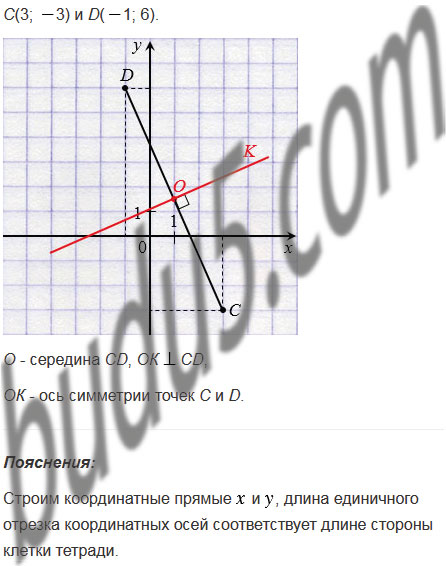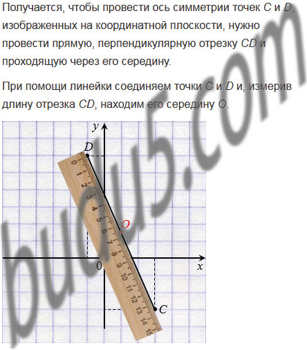 Отметьте на координатной плоскости точки С(3; 3) и D(1; 6). Пользуясь линейкой и угольником, проведите ось симметрии этих точек.