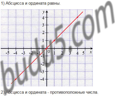 1) абсцисса и ордината равны;