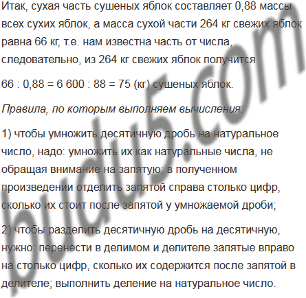 Свежие яблоки содержат 75% воды, а сушеные - 12%. Сколько килограммов сушеных яблок получится из 264 кг свежих?